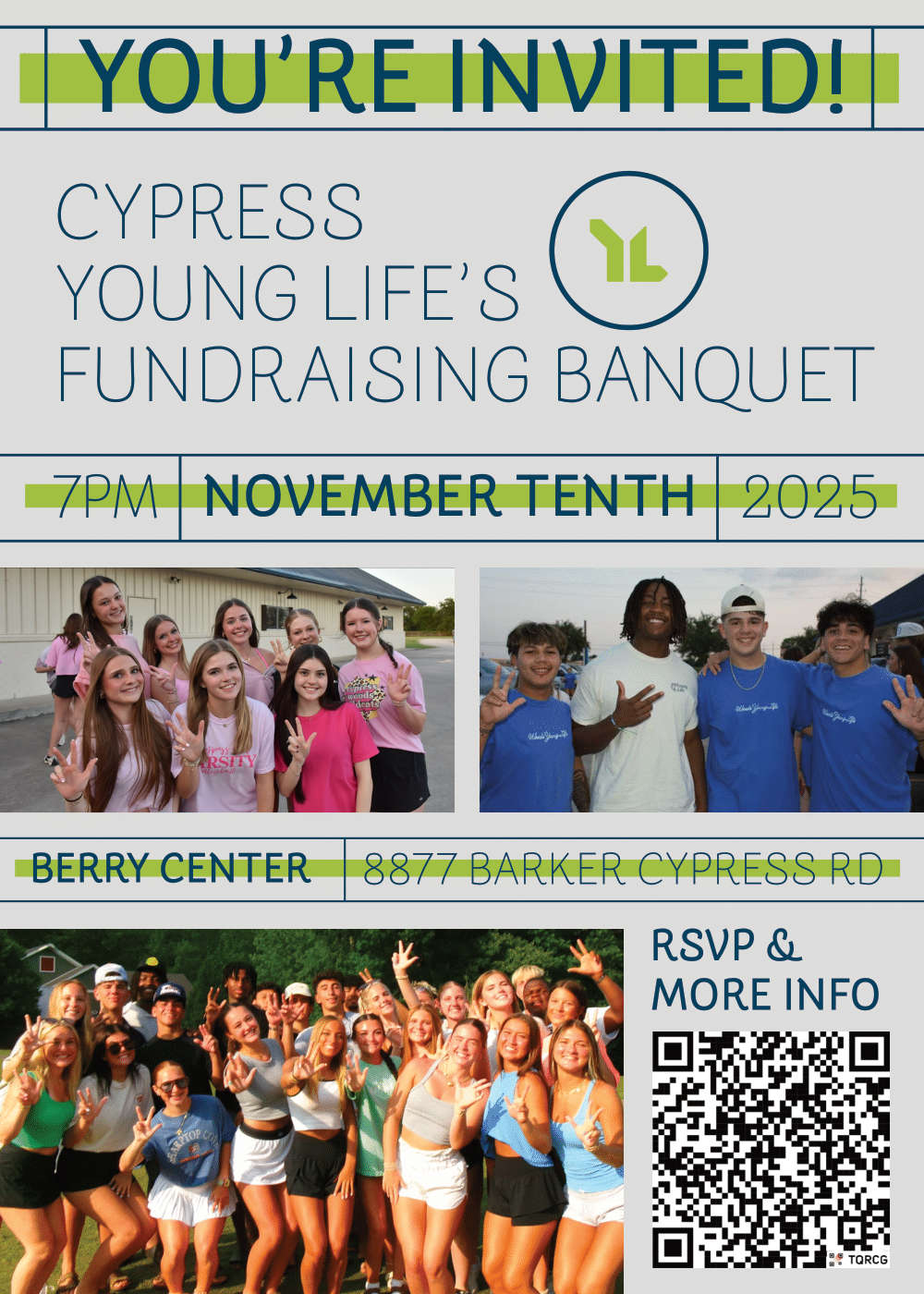 We are so excited to announce this year's Young Life Banquet is happening Monday, November 10th at 7:00pm. Please take a moment to consider how you can be involved in our most important fundraiser of the year.
